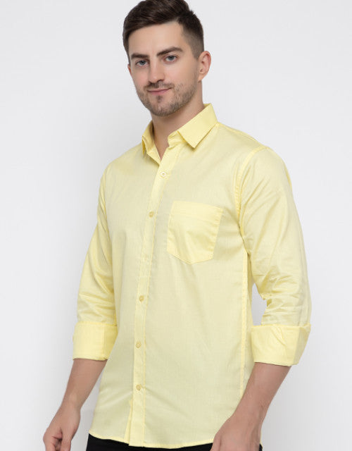 Men Regular Fit Solid Spread Collar Casual Shirt