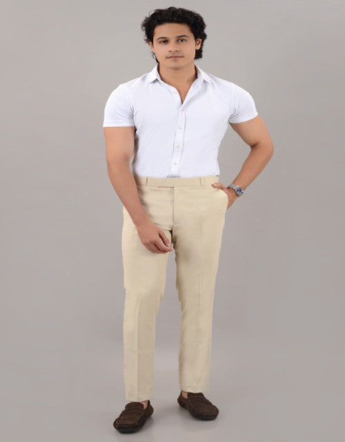 Cream Stretchable Formal Pant with Expandable Waist for Men (SIZE - 30,32,34,36)