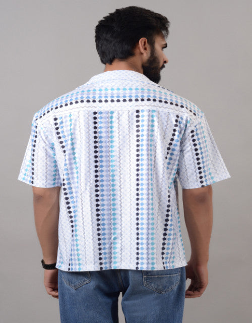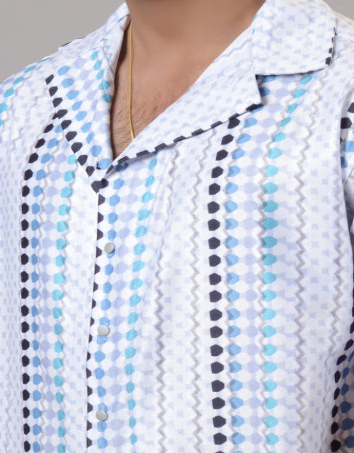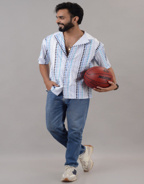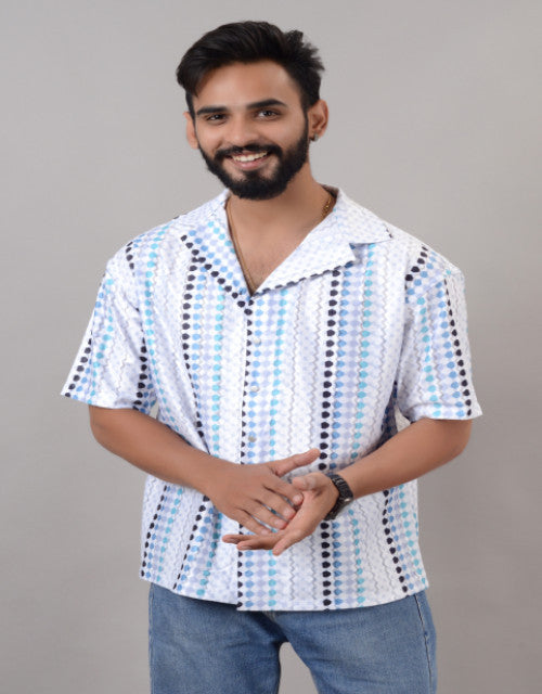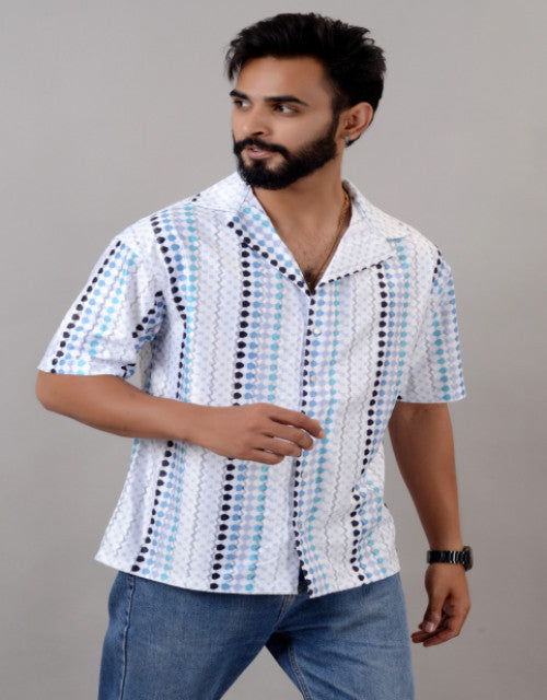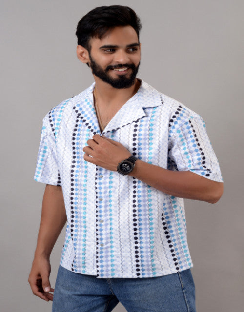 Men Blue Cotton Blend Printed Spread Collar Half Sleeves Oversized Casual Shirt (SIZE- M,L,XL)