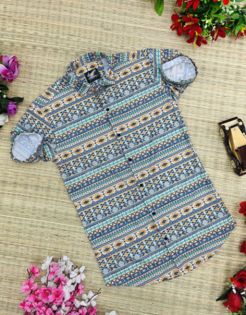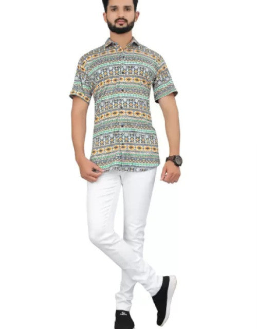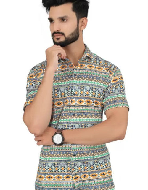 Men Regular Fit Printed Spread Collar Casual Shirt