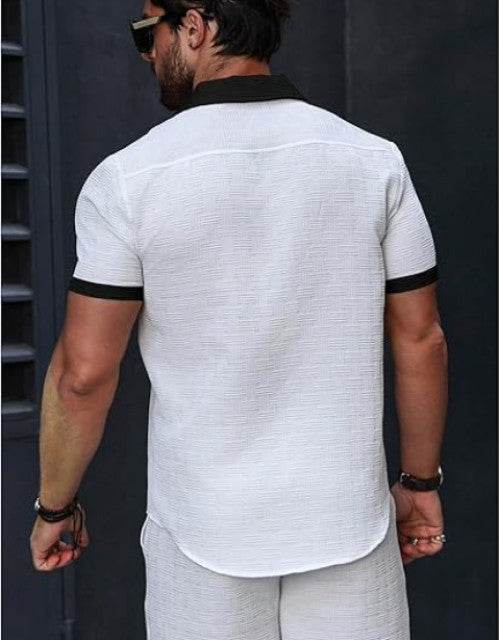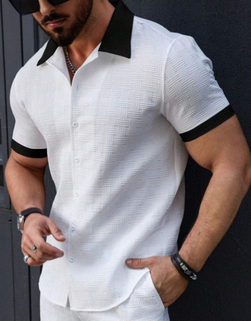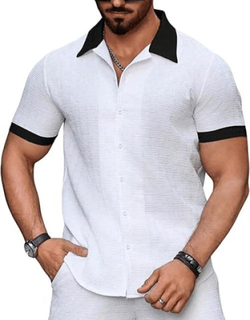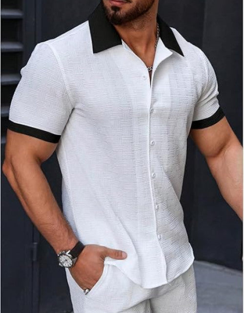 Men Regular Fit Self Design Spread Collar Casual Shirt