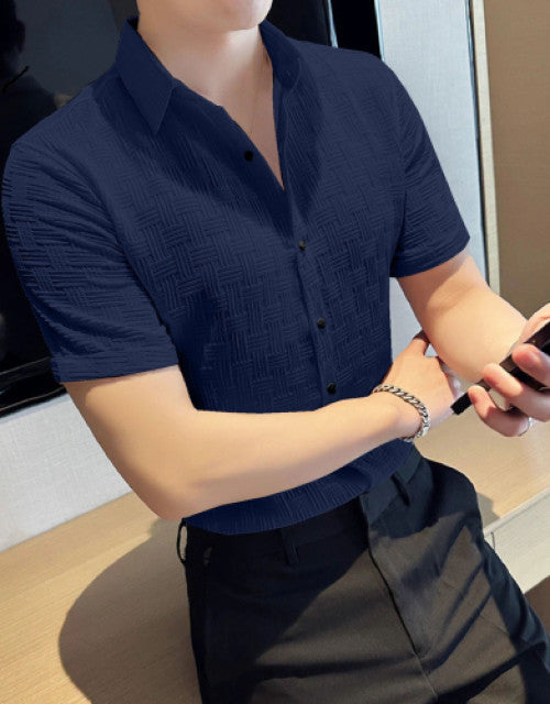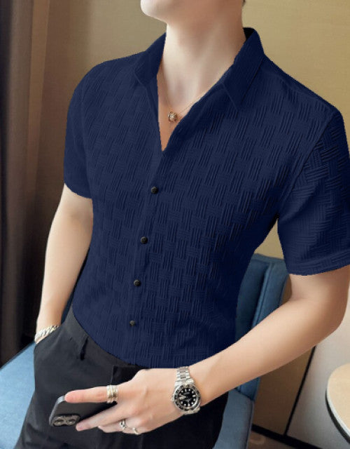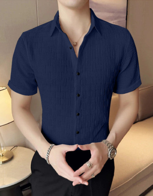 Men Regular Fit Shirt with Spread Collar
