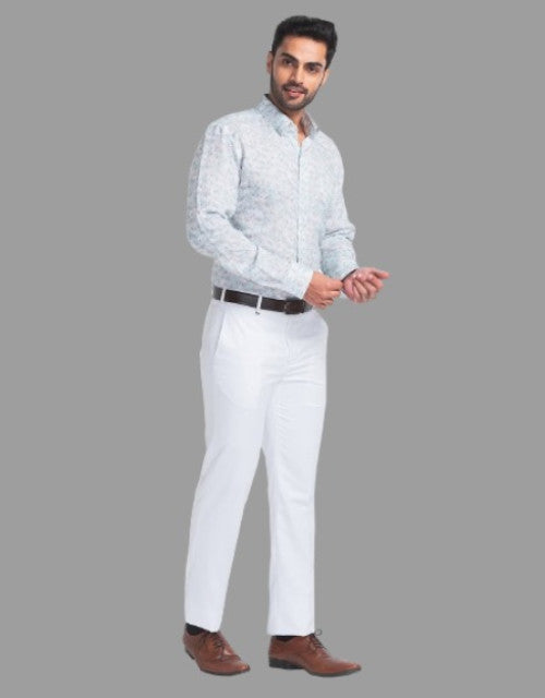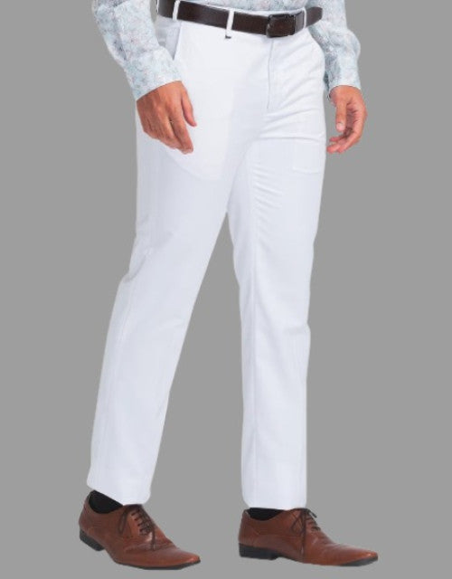 White Solid Mid-Rise Stretchable Men's Formal Trousers (SIZE- 30,32,34,36)