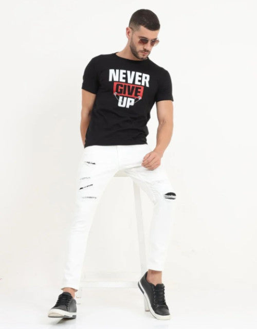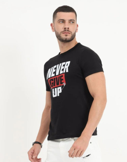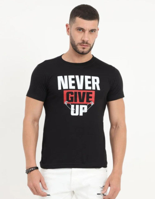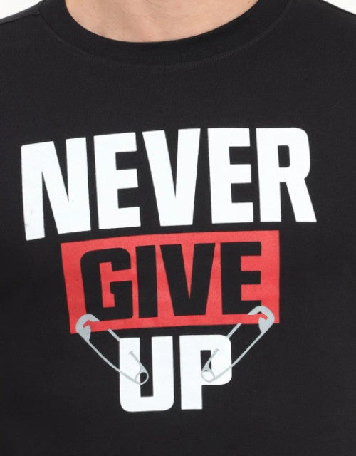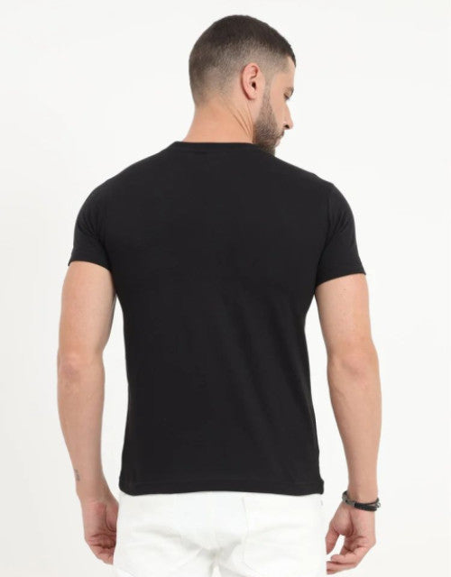 Dashy Club Hand Printed Black 100% Cotton Round Neck Tshirt