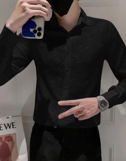 Men Regular Fit Solid Spread Collar Casual Shirt