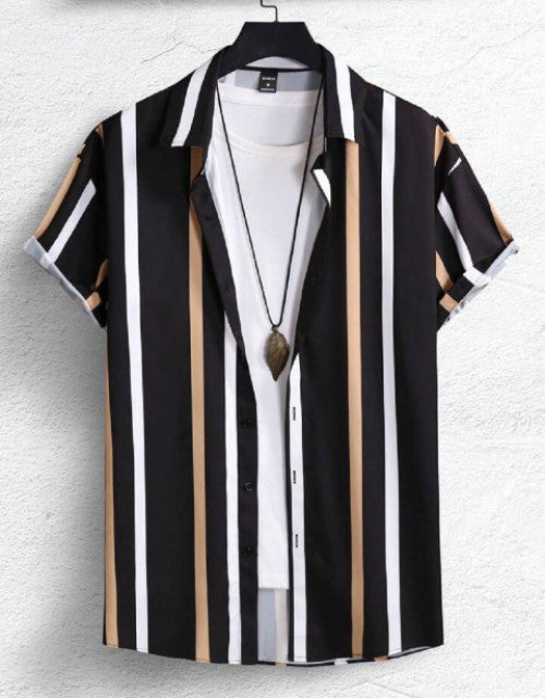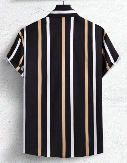 Men Regular Fit Striped Spread Collar Casual Shirt